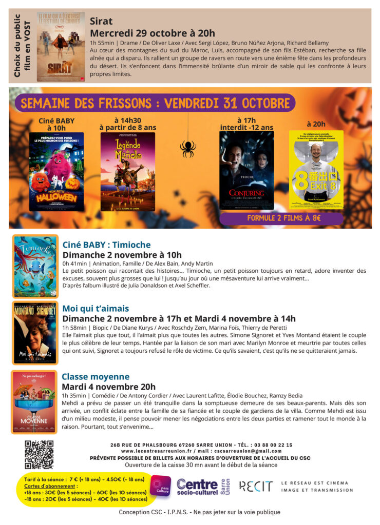 Ouverture de la caisse 30 minutes avant le début de la séance.
