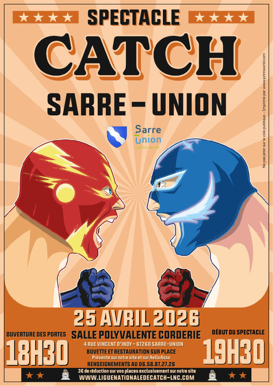 La Ligue Nationale de Catch organise un gala de catch le samedi 25 avril 2026 à Sarre-Union, salle de la corderie.