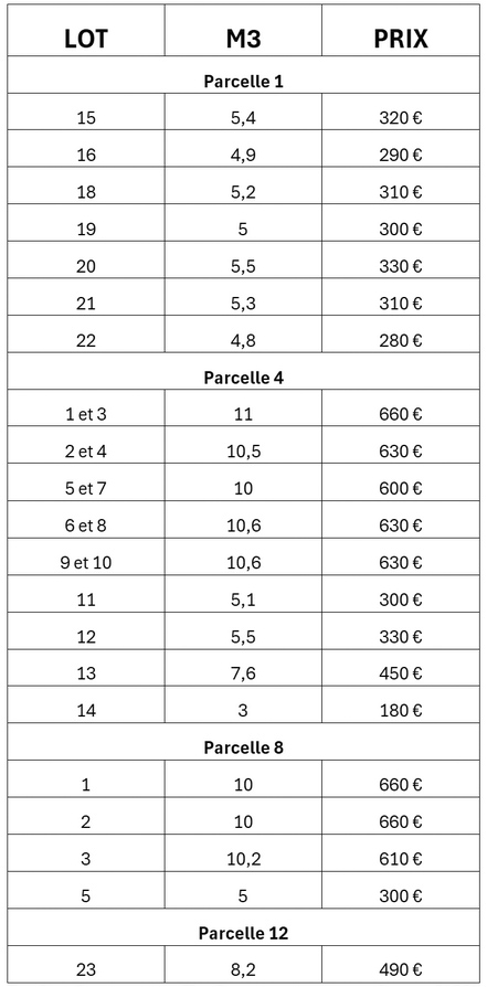 Le début du façonnage des 3 lots de fonds de coupes en parcelle 4 débutera le 9 Novembre 2025. Interdiction de commencer avant cette date.
